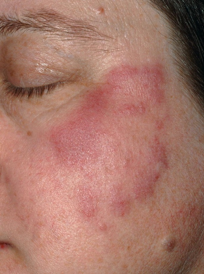 Кожная волчанка (лат. Lupus erythematosus cutaneus) — это хроническое аутоиммунное заболевание кожи, при котором иммунная система атакует клетки кожи, вызывая воспаление, покраснение и образование характерных пятен. Чаще всего поражаются открытые участки тела — лицо, нос, щеки и уши. Заболевание может протекать в виде дискоидной формы, при которой на коже появляются округлые красные бляшки с шелушением и последующим образованием рубцов. Внешне эти проявления могут напоминать себорейный дерматит, розацеа или аллергическую реакцию.