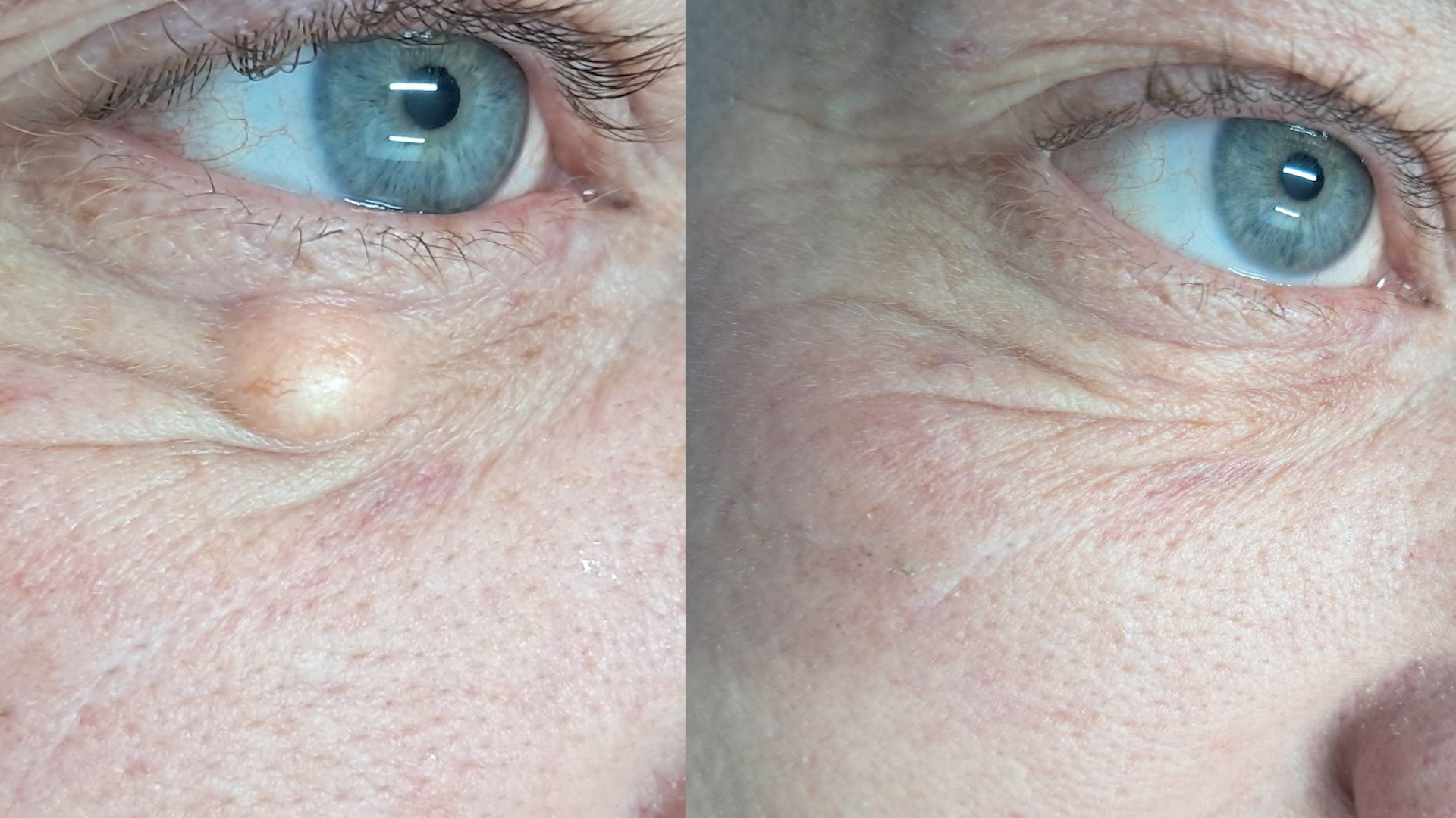 Мы провели успешное лазерное удаление и пациент был очень доволен результатом. На фото До и После удаления. Как видите, даже шрама не осталось. Милиумы сами по себе не рассасываются. Внутри капсулы продолжает накапливаться кератин, поэтому образование может слегка расти. Так что, если увас есиь подобные образования, их лучше удалить.
