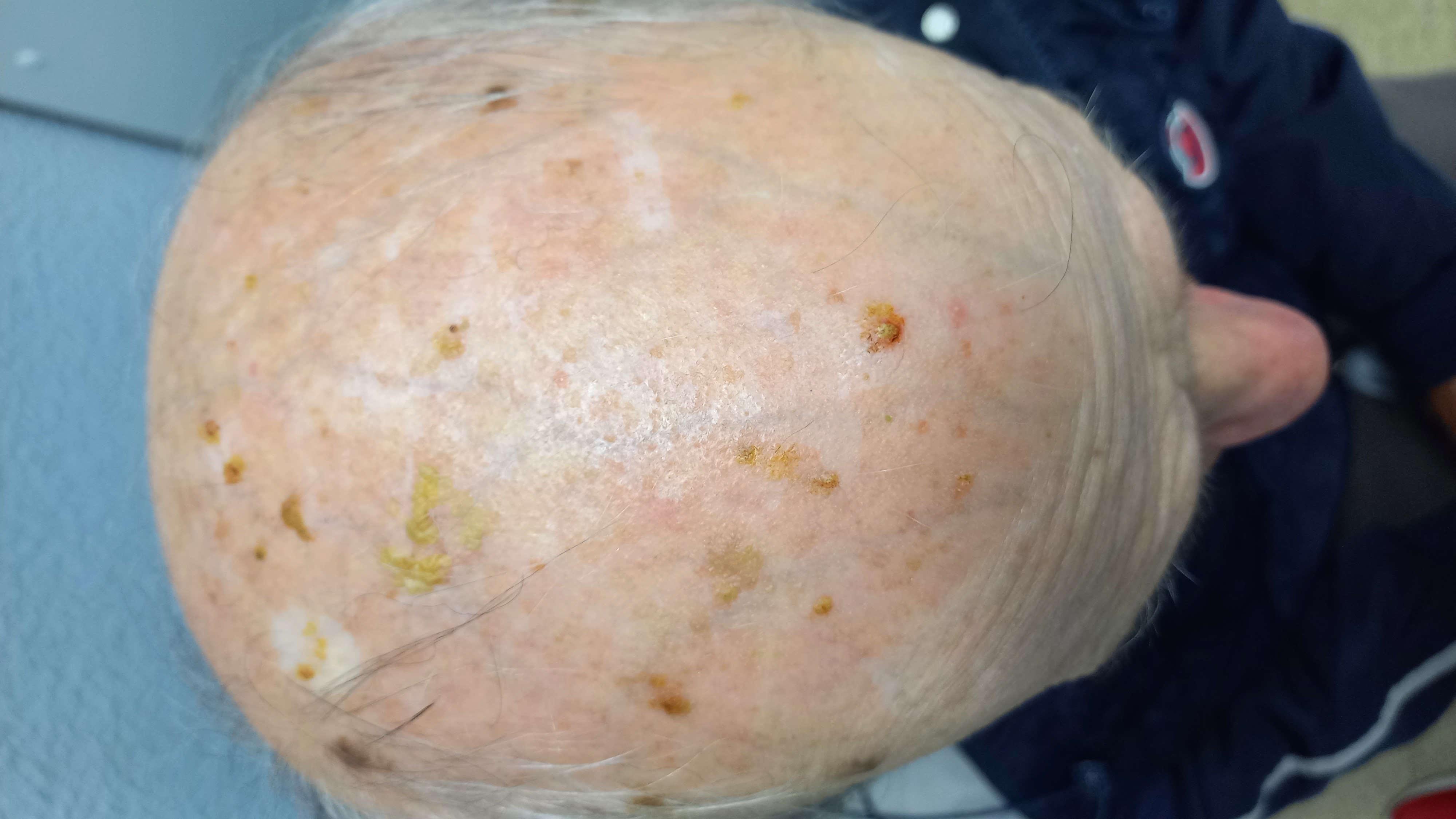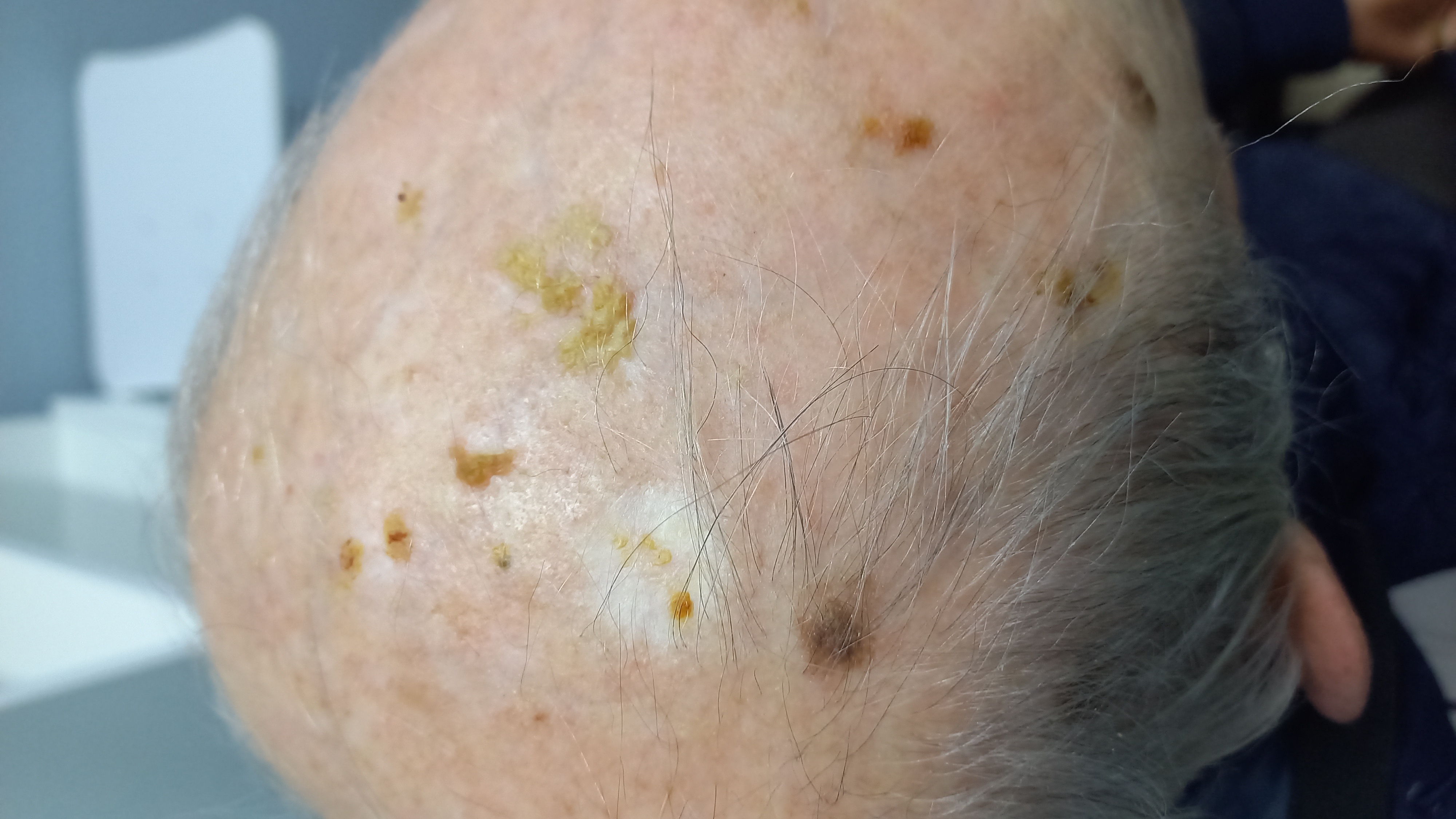 чаще локализуются на открытых участках: лице, ушах, кистях, шее, волосистой части головы у лысеющих.